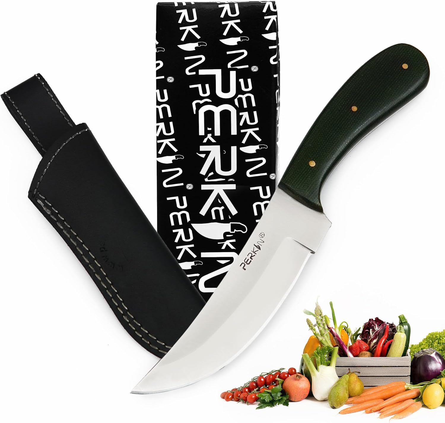 This Multipurpose Chef Knife is built for precision cutting in the kitchen, BBQs, and outdoor cooking. With a razor-sharp 420C stainless steel blade, ergonomic walnut wood handle, and handmade leather sheath, it’s perfect for chefs, grill masters, and adventurers.